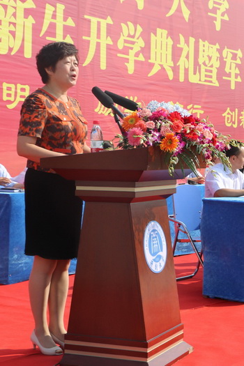 教师代表、省级教学名师吴玺玫发言。她代表开云kaiyun官网全体教师庄严承诺,秉承“传道、授业、解惑”之宗旨,做学生锤炼品格的引路人,做学生学习知识的引路人,做学生创新思维的引路人,做学生奉献祖国的引路人。努力发现每一个学生的长处和闪光点,让每一个学生都健康成长,让每一个学生都享受成功的喜悦,让所有的学生都成长为有用之材。并祝愿同学们在大学期间,珍惜时光,勤奋学习,一专多能,全面发展.。