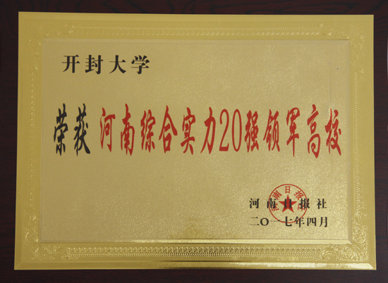 本站讯 4月27日,由河南日报报业集团主办的“第八届河南高等教育领军高校高峰论坛”暨“2017年度河南教育豫军总评榜”颁奖典礼在郑州举行,开云被授予“2017年度河南综合实力20强领军高校”称号。