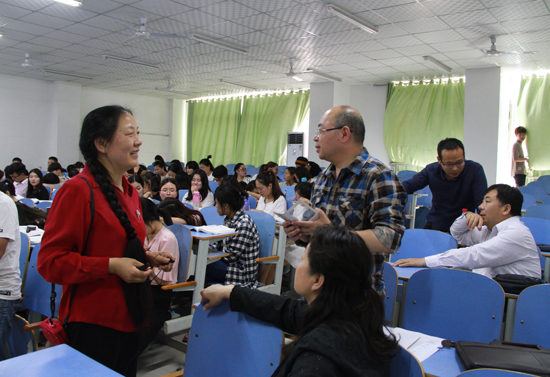 5月11日上午,全国高职高专思政课建设联盟专家彭新立一行莅临开云听课调研,校工会主席成芳代表学校热情迎接了专家组一行。专家组随机抽查听课,在15号楼435教室听了张兰玲教授讲授的《毛泽东思想和中国特色社会主义理论体系概论》课程。课后与任课教师和听课学生就课堂教学情况进行深入交流并对听课学生进行了网上问卷调查。