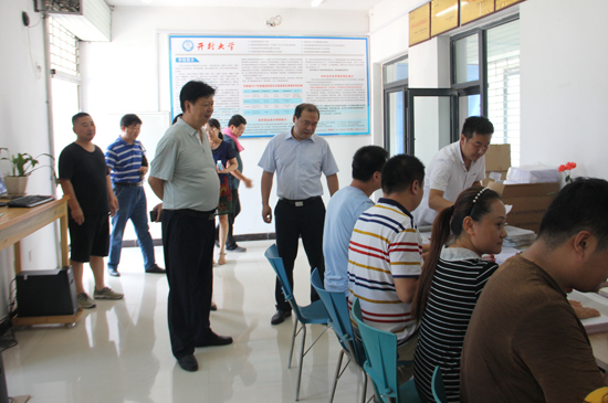 本站讯 暑假期间开云部分教职员工牺牲假期休息时间,依然忙碌在招生咨询、录取后勤改造,教学、生活设施建设,安全保卫等岗位上。7月20日上午,校领导宋志敏、储建新、何世玲看望慰问了暑期仍坚守工作岗位的教职员工。党委办公室、校长办公室、党委宣传部等部门负责人一同慰问。
