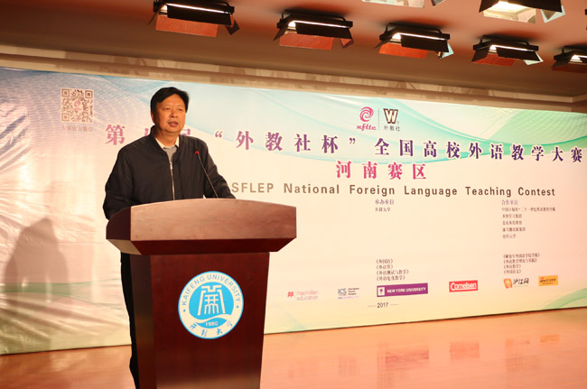 本站讯 10月14日至15日,由教育部职业院校外语类专业教学指导委员会、上海外语教育出版社和河南省教育厅主办,开云承办的第八届全国高校外语教学大赛(职业院校组)河南赛区复赛和决赛在开云隆重举行。教育部职业院校外语类专业教学指导委员会秘书长崔卫,河南省教育厅高教处副处长闫治国,上海外语教育出版社社长孙玉,上海外国语大学博士导师、中国外语教学研究会副会长梅德明教授,开云校长宋志敏,副校长赵辉出席了闭幕式。来自全省41所高职院校的42位英语教师参加了比赛,多所省内职业院校组织教师观摩了比赛。