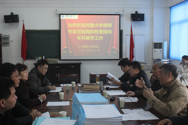 本站讯 11月22日上午,河南大学教务处副处长白宪臣教授、督导组组长卜宏建教授等一行10人莅临开云土木建筑工程学院,对开云和河南大学联办土木工程本科专业教学工作进行期中检查。开云副校长赵辉以及土木建筑工程学院负责人一同检查。