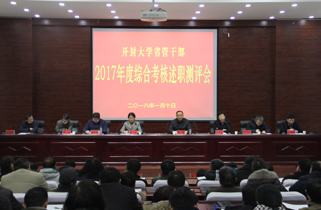 本站讯 1月10日上午,以河南省教育厅副巡视员张涛为组长的河南省委第七考核组一行6人对开云省管干部进行2017年度考核,考核测评会在行政楼一楼会议厅举行。开云中层正职以上干部、教授、民主党派代表、教师代表和学生代表参加了会议。会议由校长宋志敏主持。