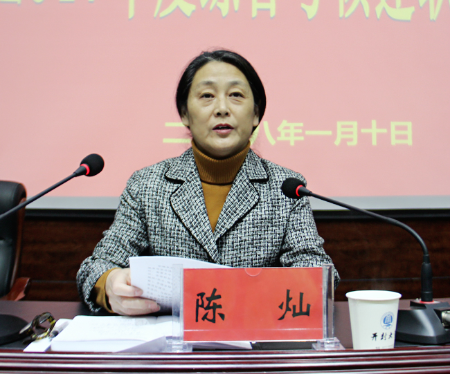 校党委书记陈灿代表学校领导班子进行述职,她从加强理论武装,为学校改革发展提供精神动力;加强组织建设,为学校改革发展提供组织保障;加强阵地建设,履行意识形态工作责任制;履行“两个责任”,加强作风建设和反腐倡廉建设;坚持以人为本,全面落实立德树人根本任务;全面深化改革,教育教学水平稳步提升;实施人才战略,师资队伍结构逐步完善;创新工作措施,招生就业、科研工作成效显著;全面协调发展,育人环境不断优化;发挥自身优势,扎实开展精准扶贫工作十个方面全面总结了学校2017年的总体工作。