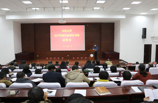 本次考核是按照各单位与学校签订的《开云kaiyun官网2017年度目标责任书》内容,结合本年度重点工作、临时重大工作、上级交办工作完成情况、创新工作,在自评自查的基础上针对目标任务进行述职。会上,签订目标责任书的45个院部处室等部门负责人逐一就本年度责任目标完成情况进行了详细的汇报,突出重点工作、创新工作,也找到了不足和短板。
