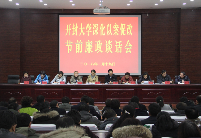 校党委书记陈灿讲话。她指出,一是要正视取得的成绩,补齐工作短板。要围绕提升办学层次、创建优质学校两大中心任务进一步解放思想,创新发展理念,明确学校的发展方向,以主人翁的态度找准问题,分析原因,集思广益,补齐短板,不断提升办学质量、完善软硬件建设、提高创新能力、服务开封发展;二是要勇于履责担当,抓好工作落实。各单位各部门要严格按照宋校长的会议要求,拉出任务清单,倒排时间节点,明确责任人,切实抓好工作落实;三是要切实提升站位,确保廉洁过节。全体党员要按照省市有关精神,明确纪律“红线”,严明纪律要求,与党中央保持高度一致,做到心中有戒、行为有度,过一个健康、文明、廉洁的春节。学校纪委要综合运用监督执纪“四种形态”,持续加大对节假日违反中央八项规定精神问题的查处力度;四是要深化以案促改,净化政治生态。全体教职工要用身边事教育身边人,对标先进,向榜样学习,讲好身边故事,用正能量凝聚人心。下一阶段,学校将按照中共中央政治局常委、中央纪委书记赵乐际的批示,按照省市的统一部署,把以案促改工作放在更加突出的位置,强化责任担当,注重压实责任,注重真抓实做,注重讲求实效。陈书记要求全体开大人要不忘初心,凝心聚力、用奉献诠释责任、用担当托举梦想,坚定不移推进全面从严治党,统筹学校改革发展稳定各项工作,以实际行动贯彻落实宣传党的十九大精神,为“提升办学层次、创建优质学校”、“四个开封”建设贡献智慧和力量。