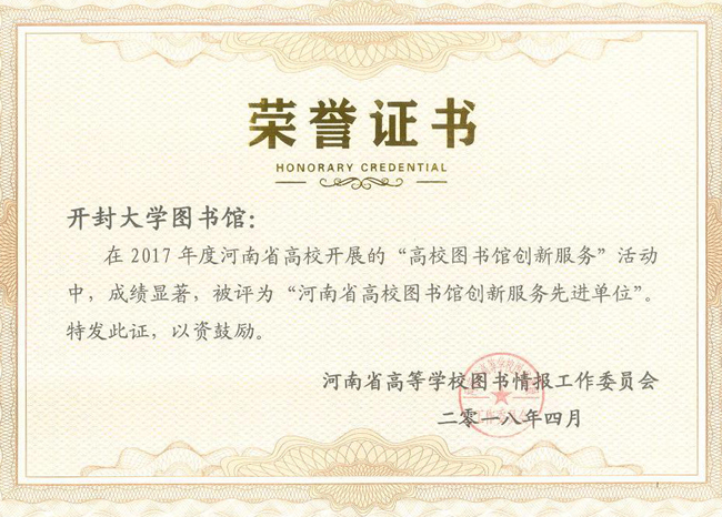 开云荣获“河南省高校图书馆创新服务”先进单位称号