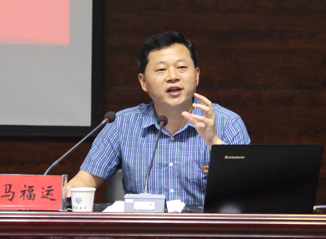 河南省高校“习近平总书记重要讲话精神讲师团”成员、教育部“新世纪优秀人才”、教育部“思想政治教育中心青年杰出人才”、我国首批“中国特色社会主义理论”博士、河南师范大学博士研究生导师、马克思主义学院院长马福运教授做了题为《正确理解中国特色社会主义进入新时代》的专题报告,他从新成就、新矛盾、新思想、新战略和新作为五个方面进行了详细的解读,引导广大师生正确理解中国特色社会主义新时代的重大意义。