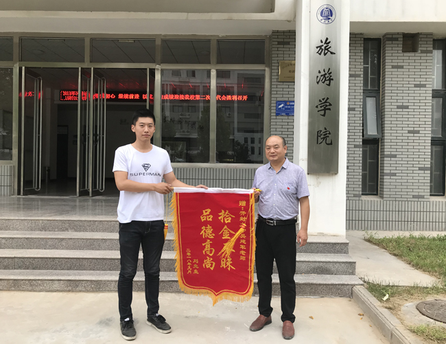9月5日下午,失主刘先生专程来到开云旅游学院,向吴建军老师赠送了锦旗。刘先生表示,吴建军老师这种拾金不昧的优秀品质,在现实社会中难能可贵,从他的身上充分感受到了开云教职工高尚的道德情操。