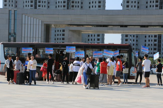 校园里迎接新生的标语条幅随风飘扬,喜迎新生气氛热烈,工作人员和学生志愿者早早地就在各车站接站点、报到咨询处、各院部的接待站忙着迎接新生。校领导陈灿、储建新、万是明、赵辉、李新春、成芳、曾小平、李治以及相关职能部门负责人也来到迎新现场,亲切看望报到入学的新生,了解新生报到注册情况,慰问参与迎新的工作人员、志愿者,并与新生和家长亲切交谈,为大家送来了暖心的关怀与问候。