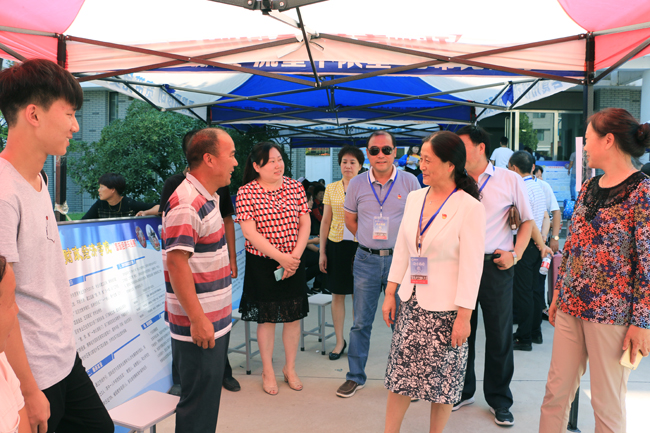 校领导与新生家长亲切交谈