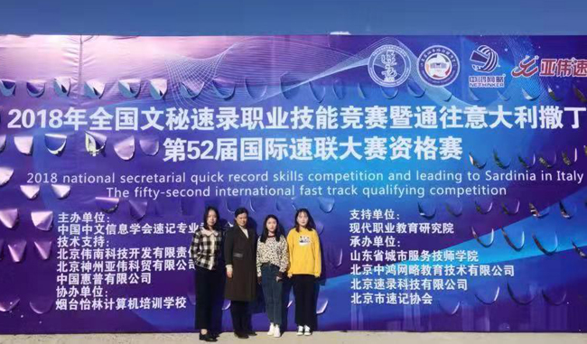 本站讯 10月28日,由中国中文信息学会速记专业委员会主办的“2018年全国文秘速录职业技能竞赛暨通往意大利撒丁岛第52届国际速联大赛资格赛”在山东烟台落下帷幕。开云人文学院学生赵柳怡荣获办公专项技能成年组二等奖、蒙目速录单项成年组三等奖,桑园园同学荣获蒙目速录单项成年组三等奖、速录专项技能三等奖,申志乾同学荣获优胜奖。人文学院教师楚清伟、郑洁被评为优秀指导教师。