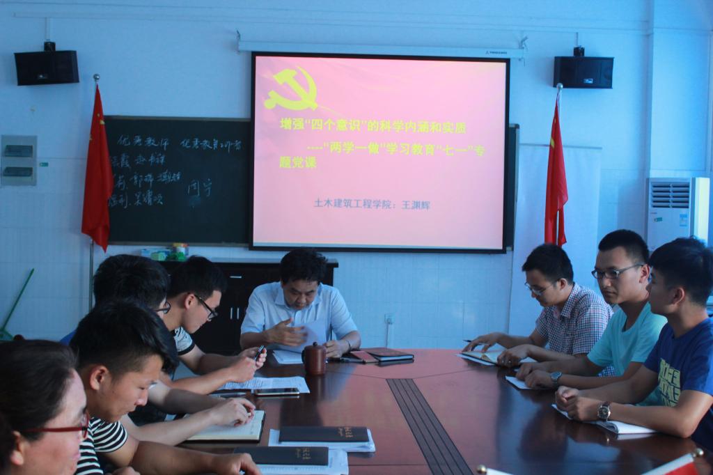 6月21日上午在土木建筑工程学院五楼会议室,院党总支书记王渊辉为全体教工党员和学生党员上了一堂生动而精彩的党课。党课题目为增强“四个意识”的科学内涵和实质——“两学一做”学习教育“七一”专题党课。