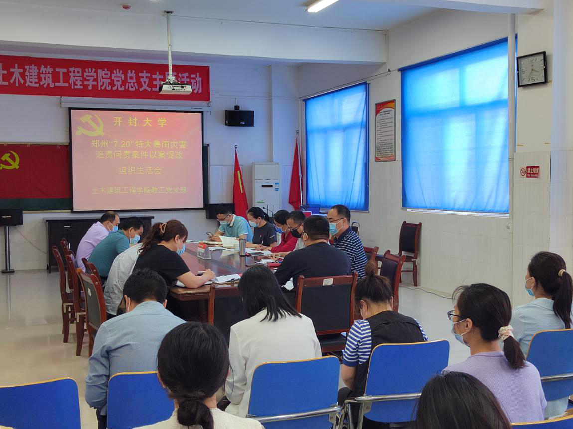 5月26日下午,土木建筑工程学院教工党支部在学院会议室召开郑州“7.20”特大暴雨灾害追责问责案件以案促改专题组织生活会。校党委书记陈灿以一名普通党员身份参加此次会议,会议由教工党支部书记赵书锋主持。
