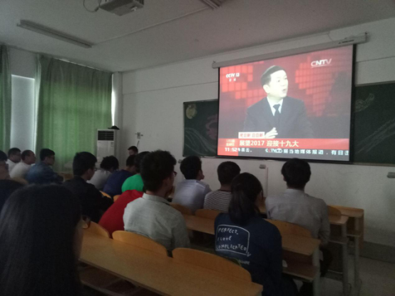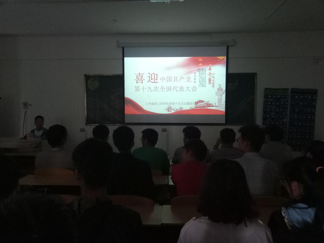 首先,15级土木工程团支部全体成员起立并齐唱团歌一一五月的花海,嘹亮的歌声响彻云霄!接着刘翔宇为同学们介绍本次活动的主题并组织同学们发表自己对十九大的认识,紧接着带领大家一起学习我国人民代表大会的基本知识、并观看央视新闻相关节目来了解党的十九大的召开的意义!随着活动气氛不断升温,同学们不由自主地跟着主持人喊出了“不忘初心,继续前行!”的口号!