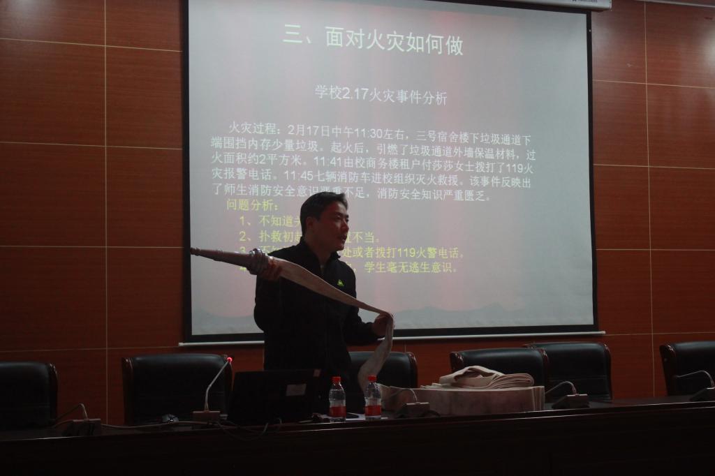 通过贾处长的精彩讲解使同学们掌握了如何防范火灾、如何消除火灾以及在火灾中如何自救逃生,提高了同学们的消防能力、增强了同学们的安全意识。这是一次让同学们受益终生的安全知识讲座,整场安全知识讲座时而被掌声打断,时而充满欢声,时而全场肃静。同学们普遍反应良好,并希望学校以后能多组织一些这样的讲座。