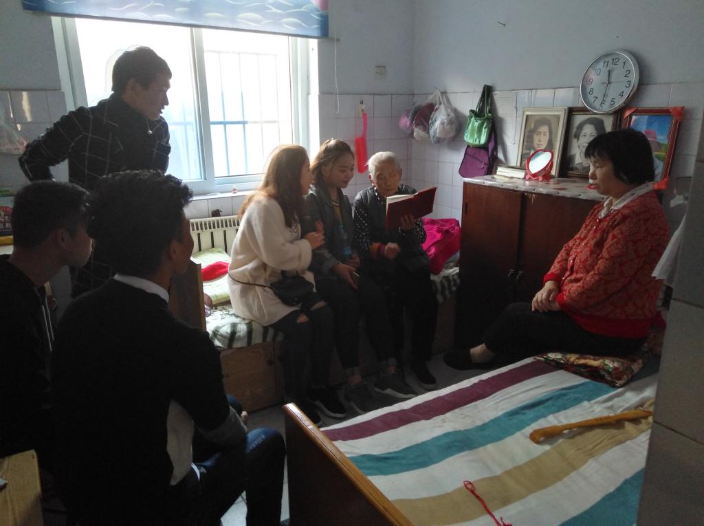 到达地点后同学们就开始投入到了为老人的服务中去。同学们带来了自己准备的水果为老人们分发。扶爷爷奶奶们回房间陪他们聊天,做一些自己力所能及的事情。老人们给同学们讲了许多过去的故事和一些做人的道理。