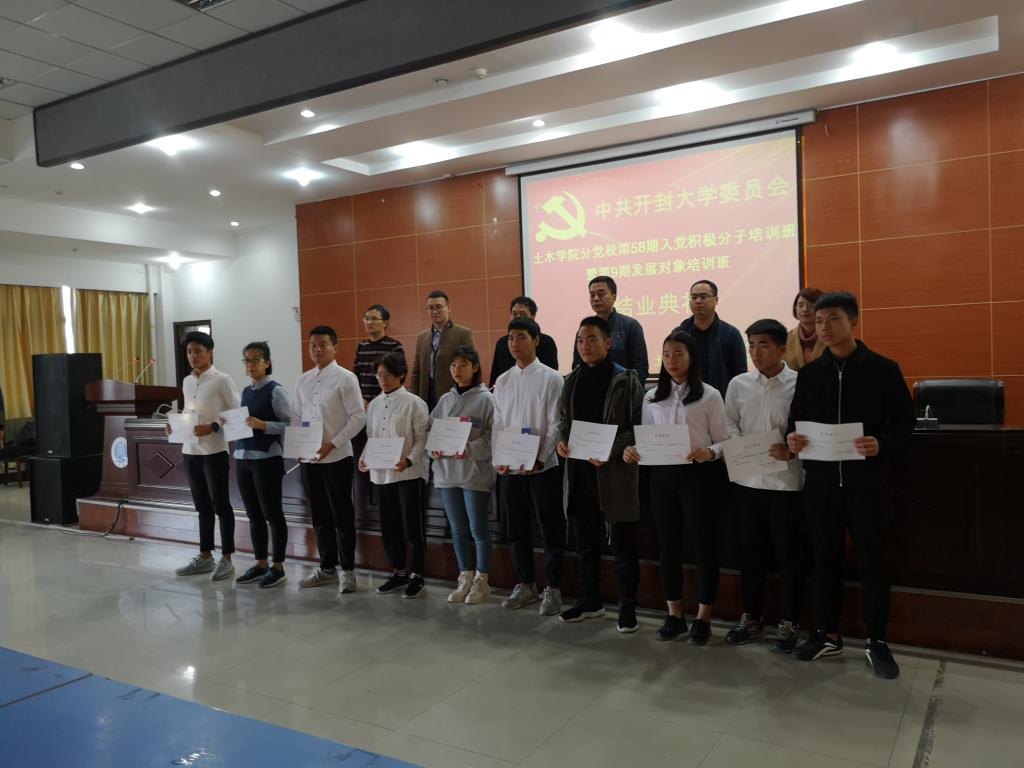 2018年11月22日下午,土木建筑工程学院在八号楼报告厅举行第9期发展对象培训班暨第58期入党积极分子结业典礼。参加本次活动的有学院党总支书记王渊辉,党总支副书记成诤磊,各班辅导员以及全体培训班学员,仪式由团总支书记武志远主持。