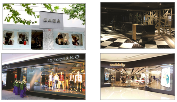 公司目前拥有2大品牌事业线,赫基线和尕尕线。赫基线主营品牌包括OCHIRLY、FIVE PLUS、TRENDIANO、COVEN GARDEN、MIKIBANA,Z11恩派雅、诗凡黎等品牌,与万达、丹尼斯、新田360、正弘城等国内高端商场达成长期合作。尕尕系统以多种品牌集成化,多种品类相结合的方式运营。店铺位置以临街店铺为主,客层广泛,主营GAGA、GA&T3、T3系列品牌,涵盖北京、上海、深圳、武汉、杭州等地的服装品牌。