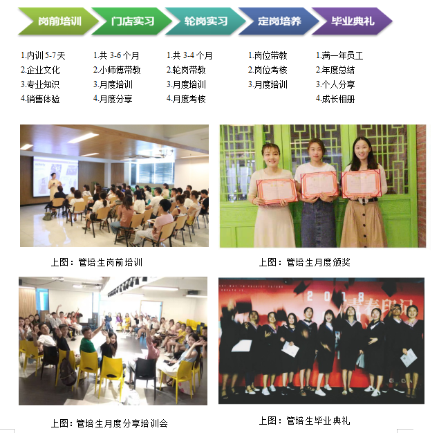 培训管理方向:内勤/导购-培训助理-培训师-培训主管-培训经理