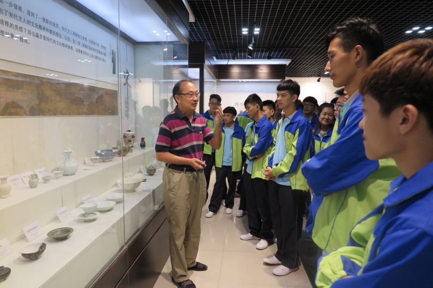 讲解员带领学生参观了博物馆内宋代陶瓷、陶模以及玩具等展区,不仅详细讲解了不同文物的故事与价值,也向学生介绍了博物馆的建设概况。大观博物馆的建设利用了开云kaiyun官网自身人才优势,从博物馆的设计装潢、到展柜与展板的制作安装以及馆内文物的修复工作,均由艺术设计学院不同专业的师生共同承担完成。