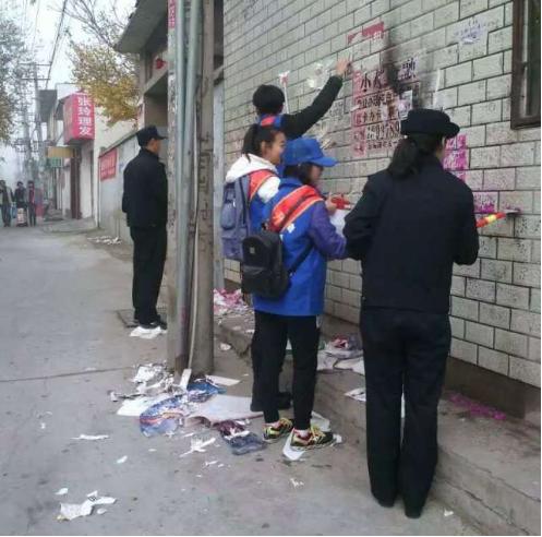 在民警同志的带领下,同学们身着统一制作的宣传服装,携带铲、喷壶等清理非法小广告工具,积极投身创文工作大潮,纷纷以自身行动倡导文明行为,劝导过往群众不要乱贴乱画、违规遛犬,利用手中工具细心清除街边每一处“牛皮癣”小广告。一天的辛苦工作,民警和志愿者们的胳膊酸了,嗓子哑了,但看到辛辛苦苦带来干净整洁的居住环境,大家是欣慰的。