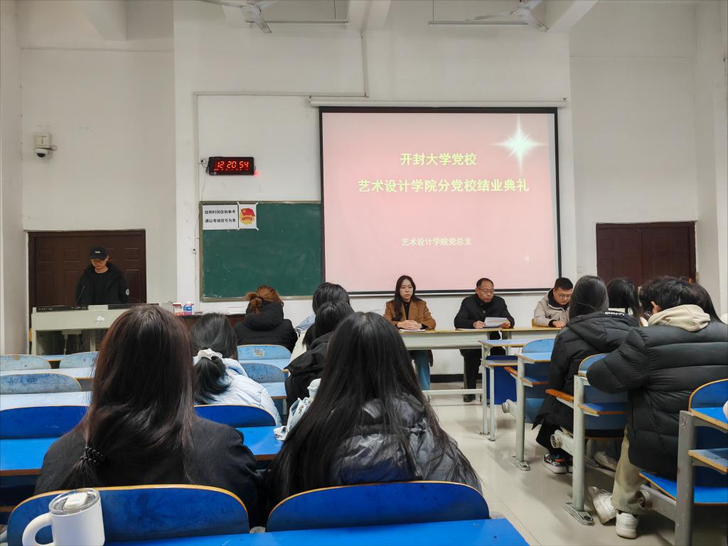本站讯 2024年11月29日中午,艺术设计学院学生党支部于15号楼520教室举行了艺术设计学院分党校第70期入党积极分子培训班暨第21期党员发展对象培训班结业典礼。艺术设计学院党总支书记赵志成、学生党支部书记王妍,宣传委员刘霄晗和全体学员参加结业典礼,本次结业典礼由组织委员任海东主持。