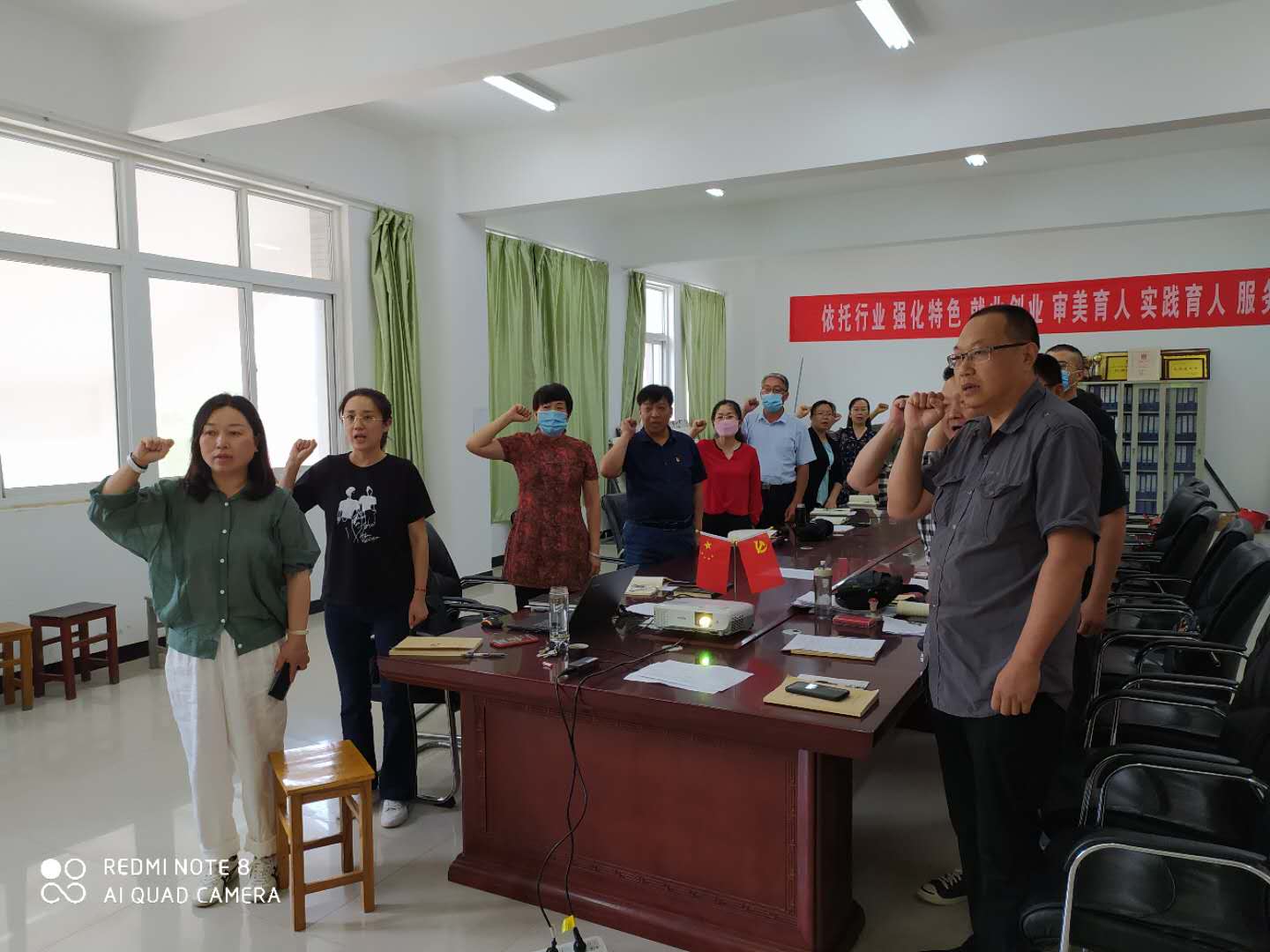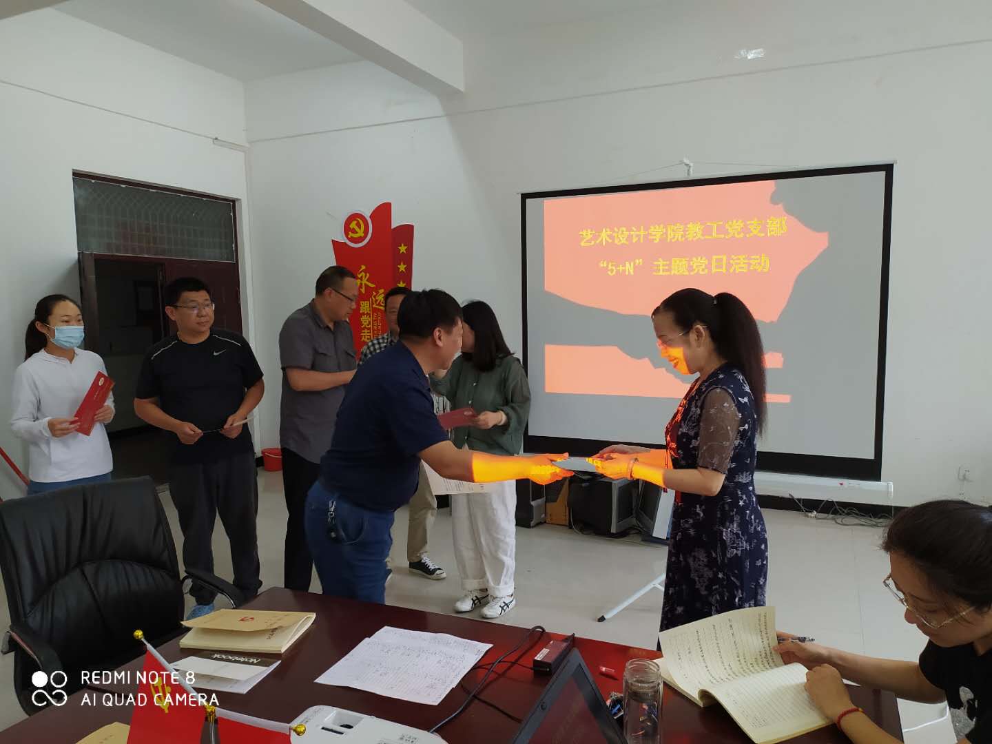 6月18日下午,艺术设计学院教工党支部全体党员在会议室完成了“5+N”主题党日活动中的五项规定动作,会议由教工党支部书记韩冰同志主持,学院全体党员教师、校纪委书记马林强同志参加。