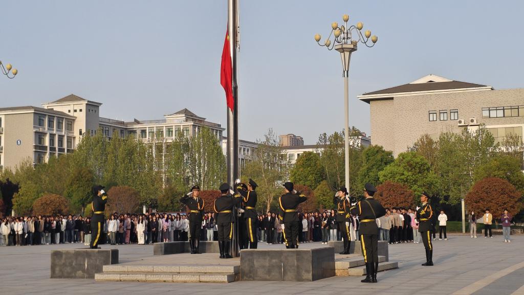 2025年4月7日早7时,艺术设计学院全体党政班子成员和教师以及一、二年级学生齐聚大观广场,举行“艺心向党·旗映青春”主题升旗仪式。团总支负责人王妍主持仪式,师生在晨曦中共同见证五星红旗升起的庄严时刻。