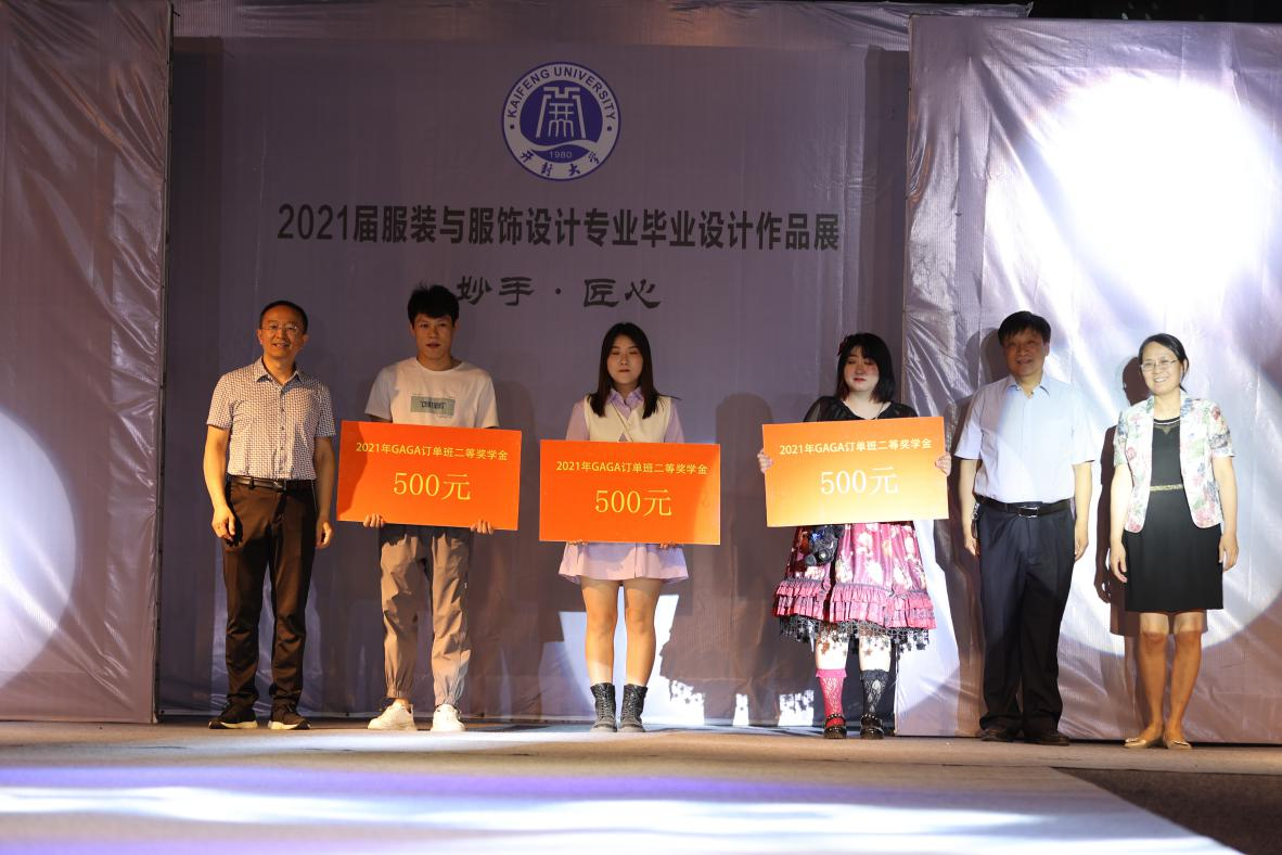 此次展演以“妙手·匠心”为主题,共展出7个风格、43个系列、120余套学生服装设计作品。年轻的设计师们从承袭和创新的角度出发,采用主题设计、风格设计和前卫设计等设计手法,通过服装解构、面料再造、色彩融合和服饰搭配等造型手段,用丰富的艺术表现形式诠释了当下的服装时尚。郑州巨木服饰有限公司为2021届“GAGA订单班”的优秀毕业生颁发奖学金,以激励同学们奋发上进,为社会输入更多新鲜的时尚血液。