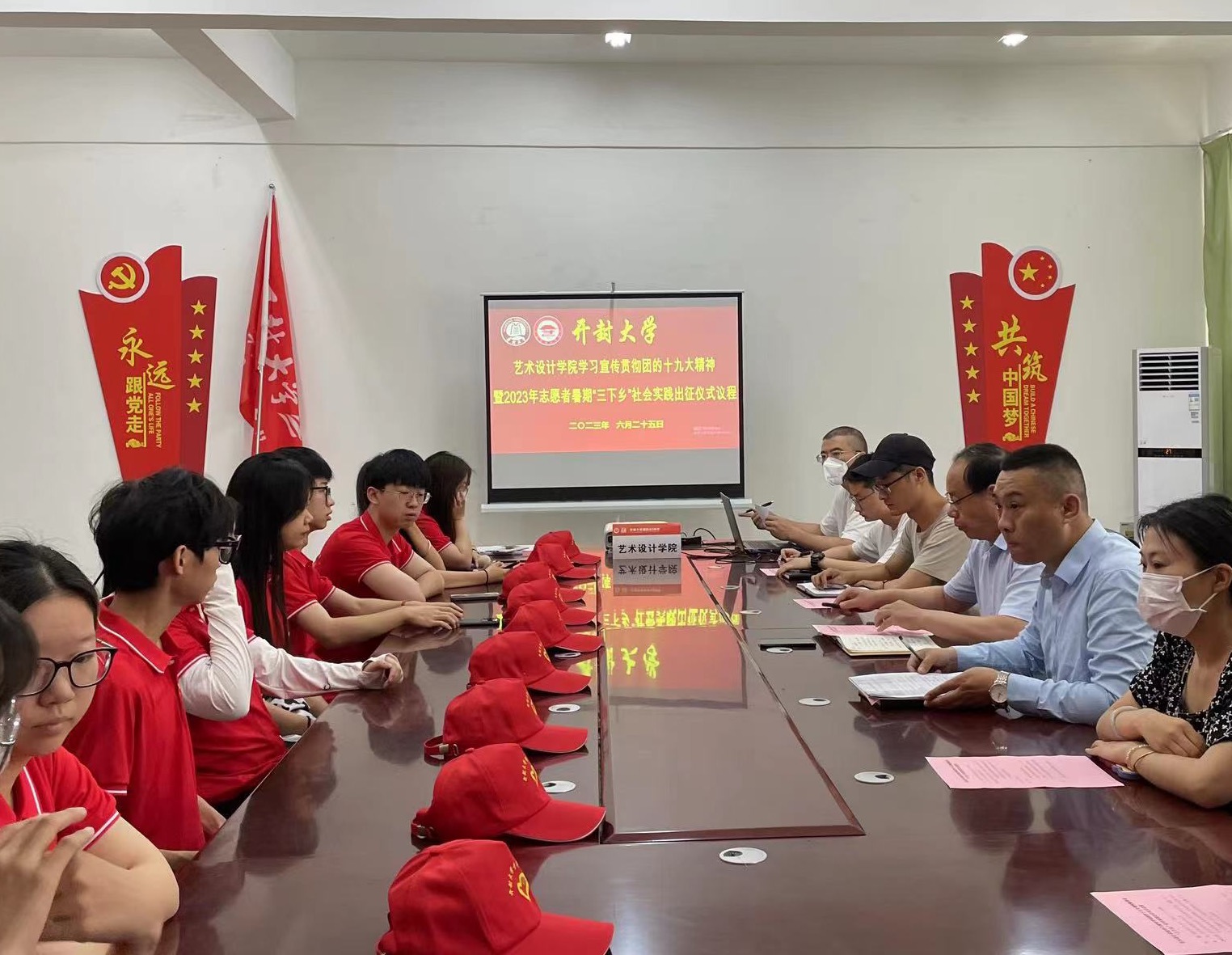 本站讯 艺术设计学院6月25日上午,在学院会议室召开“艺术设计学院学习贯彻团的十九大精神暨2023年暑期“三下乡”社会实践出征仪式”。指导老师毛梦姣、全体辅导员、暑期“三下乡”社会实践全体成员参加出征仪式,党总支书记赵志成、副书记王龙出席,团总支书记孙巳尧主持仪式。